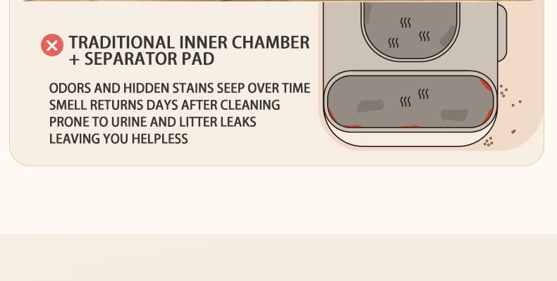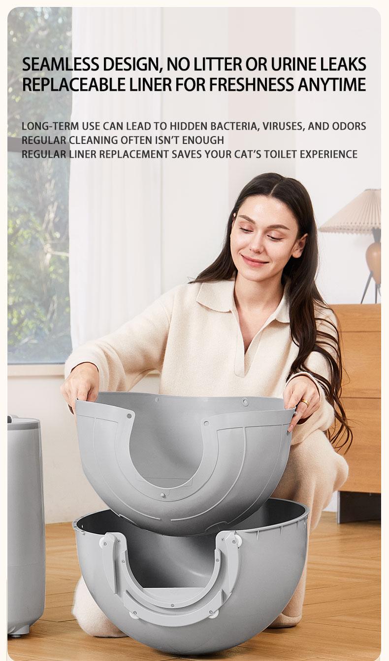 Integrated open inner compartment.The ball compartment does not leak urine or sand, and is integrated with no dead ends. Naughty cats will scratch the sand slightly, so it is relatively easy to take care of.