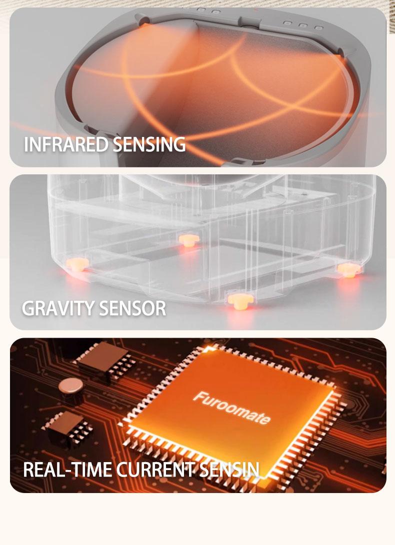 To ensure feline safety, the FUROOMATE self-cleaning litter box operates with the following intelligent workflow: