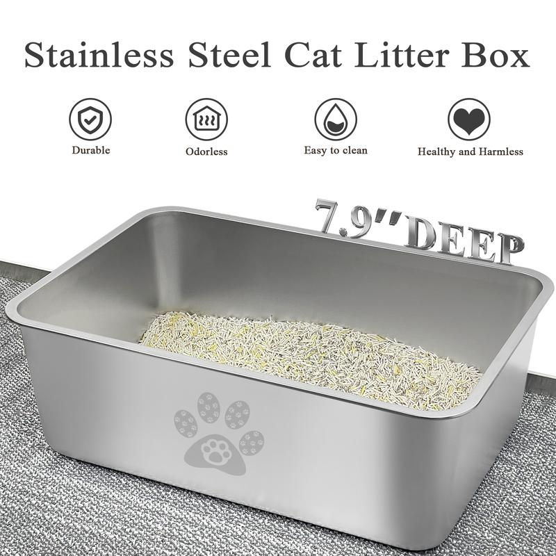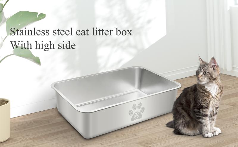 There are four silicone anti-slip pads on the bottom of the cat litter box to prevent the litter box from moving and scratching, and protect the floor. Stainless steel litter boxes do not collect any residue or odors, so if you don’t like the smell of plastic litter boxes, this litter box is a great choice for you!