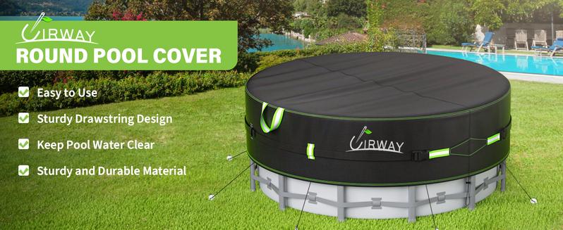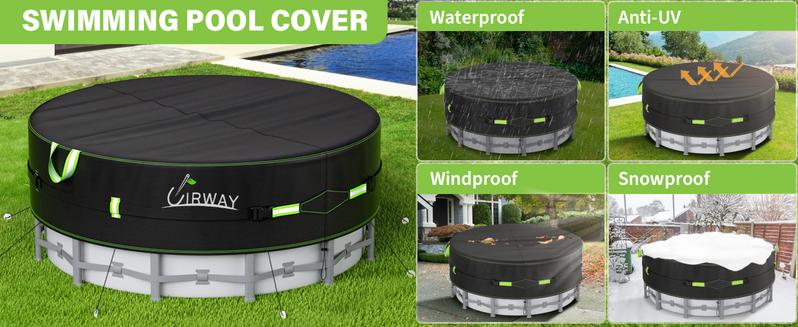 - 【Durable Protection】Round pool cover is made of 420D painted silver material and equipped with 8 windproof ropes and ground nails. It provides reliable protection against debris, leaves, and harsh weather elements, extending the life of your pool.No standing water goes through the cover to keep your water fresh, It's a money saver!