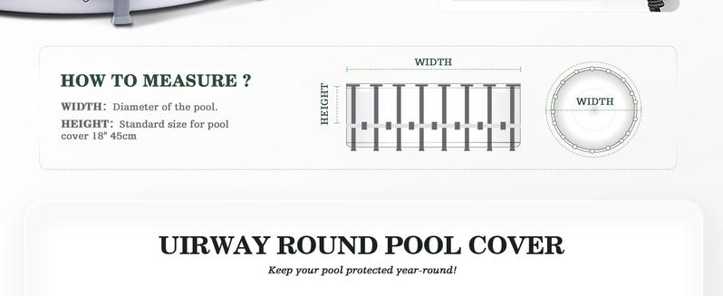 - 【Secure Fit & Tipes】The distance to the edge of the pool cover is 18 inches, which is longer than most sellers, and the chance of being blown up by the wind is smaller. Other covers are about 7-11 inches. It is recommended to put inflatable things in the pool to prevent water from sinking.