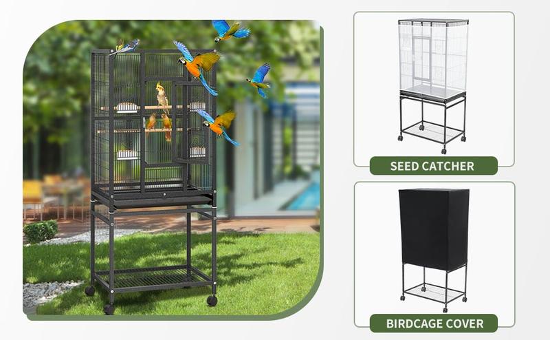 Ideal for Small/Medium Birds:With dimensions of 24''×17''×53''(L×W×H), the large bird cage can easily accommodate 2-3 birds like budgerigars, parakeets, parrots, cockatiels, lovebirds, etc.